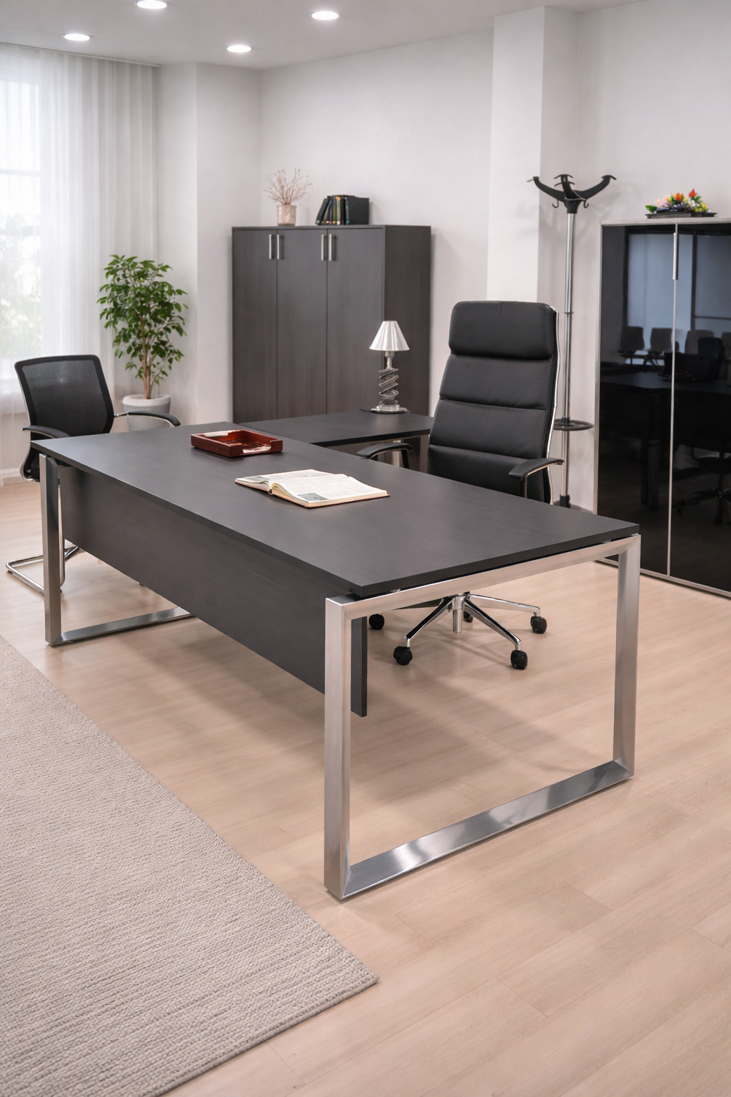 SPECIAL OFFER- FROM €1142, NOW €950 Dimensions: 200x100cm with extensions 80x60cm and modesty panel chromed metal frame and melamine top