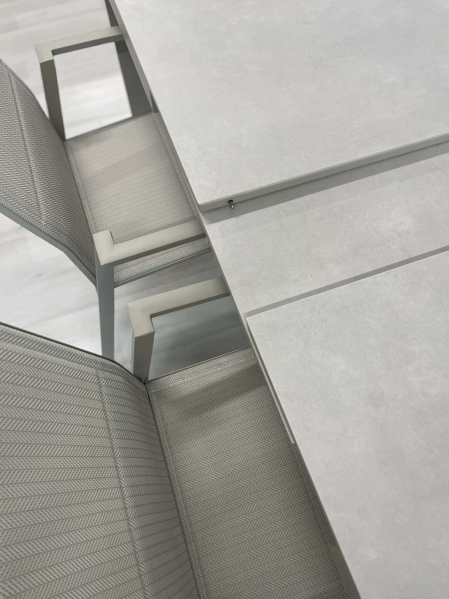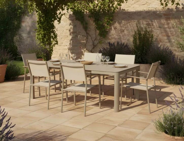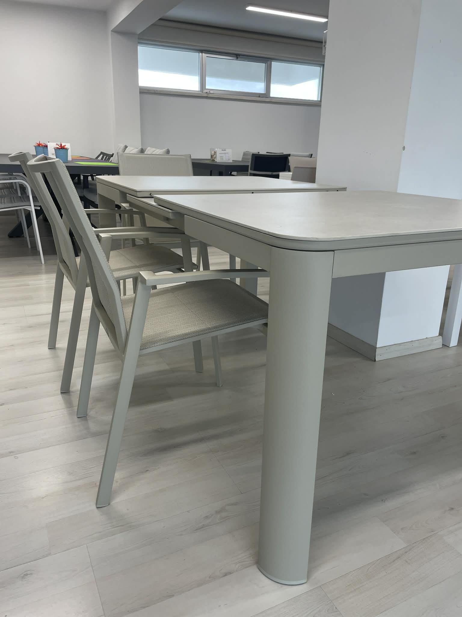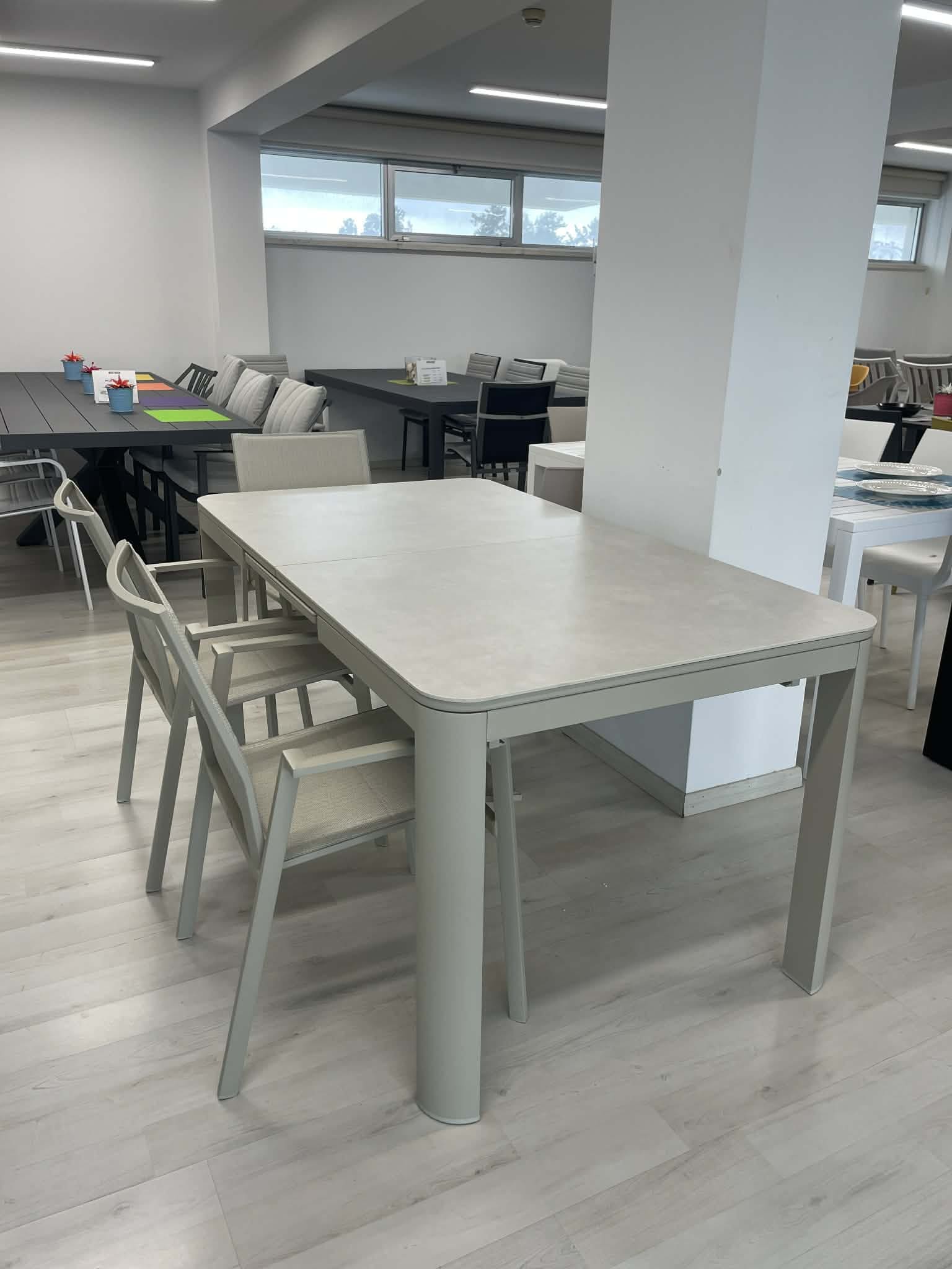 Alma extendable table combines functionality with elegant outdoor design. Featuring a durable cream aluminium frame and a refined cream ceramic tabletop, it offers excellent resistance to weather and everyday use. With its extendable design (90 × 160–210 cm), the table easily adapts to accommodate additional guests, making it ideal for outdoor dining areas, terraces, and patios.