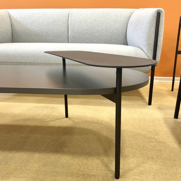 Aloha CT is a coffee table with black metal frame and melamine top in graphite colour. Its one structure attaching two table tops together to create levels.