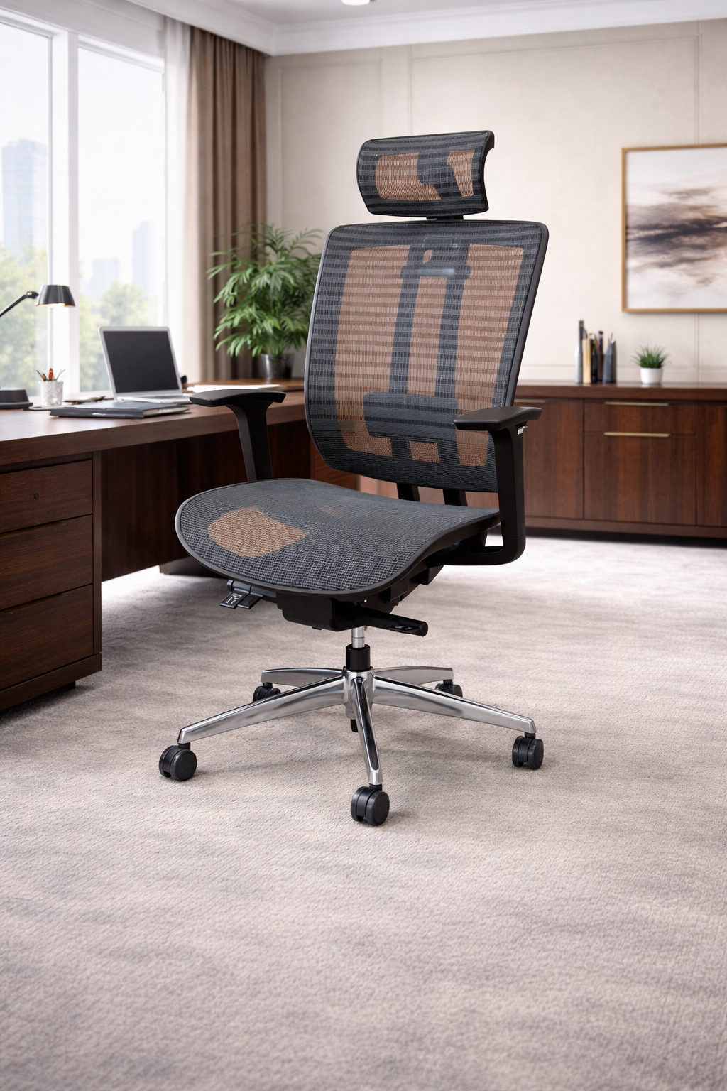 Its seat and backrest is fully meshed with horizontal lines in black and grey colour. Aria H has height adjustable lumbar support as well. A ‘breathable’ seating of office chair, that allows you to work worry-free supporting your posture with lumbar support.