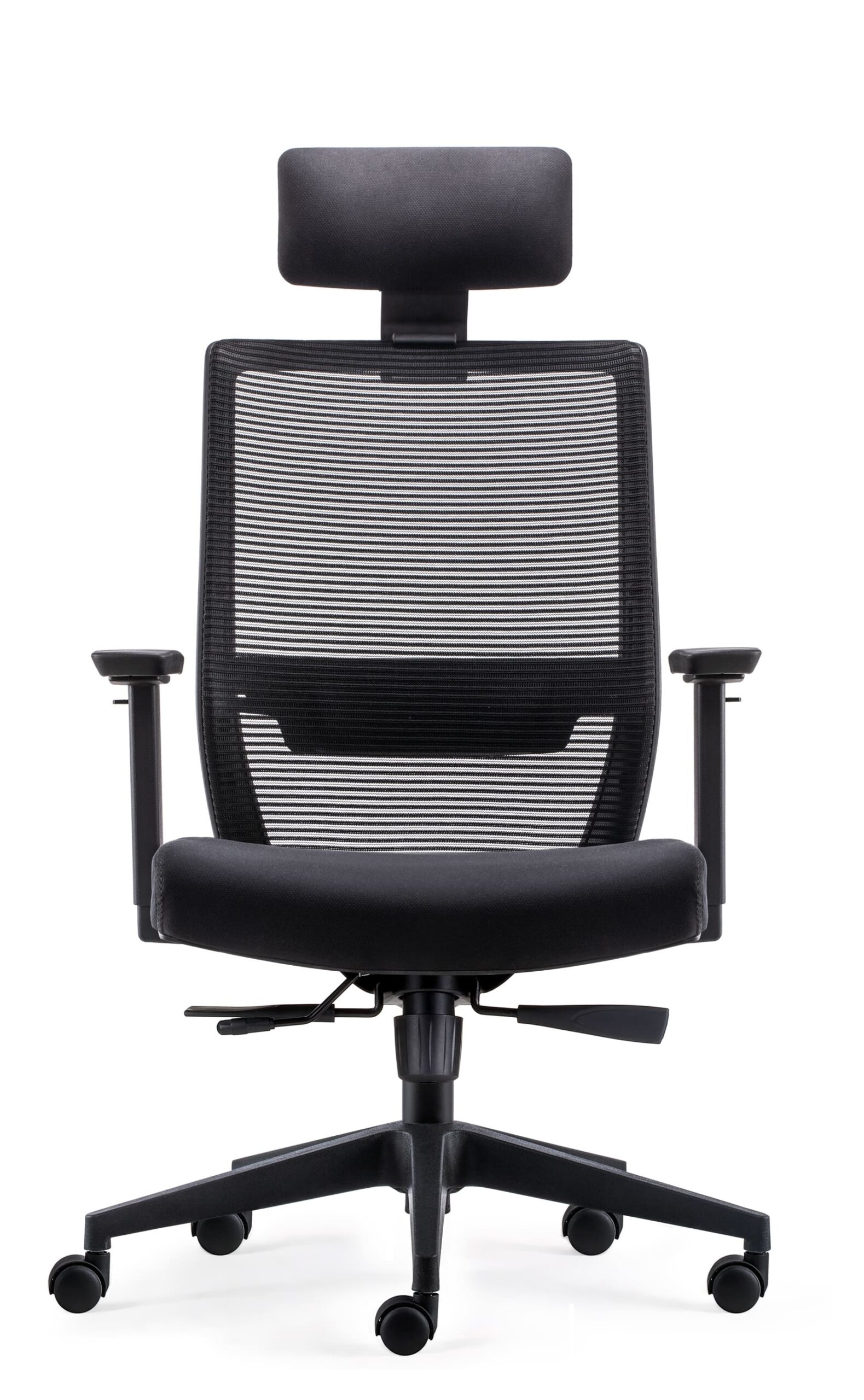 Atos is an innovative and ergonomic swivel chair on a five spoke, black coloured plastic base with castors. It has a seat height adjustment and synchronised mechanism with seat depth adjustment. Height adjustable armrests with soft pads with forward and backward adjustment and height adjustable lumbar support element. Its seat is upholstered with fabric in black or grey colour. A polypropylene structured backrest with elastic mesh in black or grey colour. Adjustable headrest is an option too.