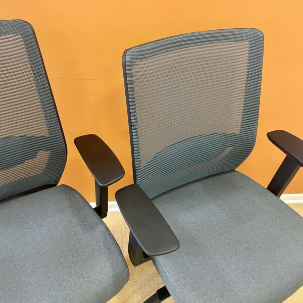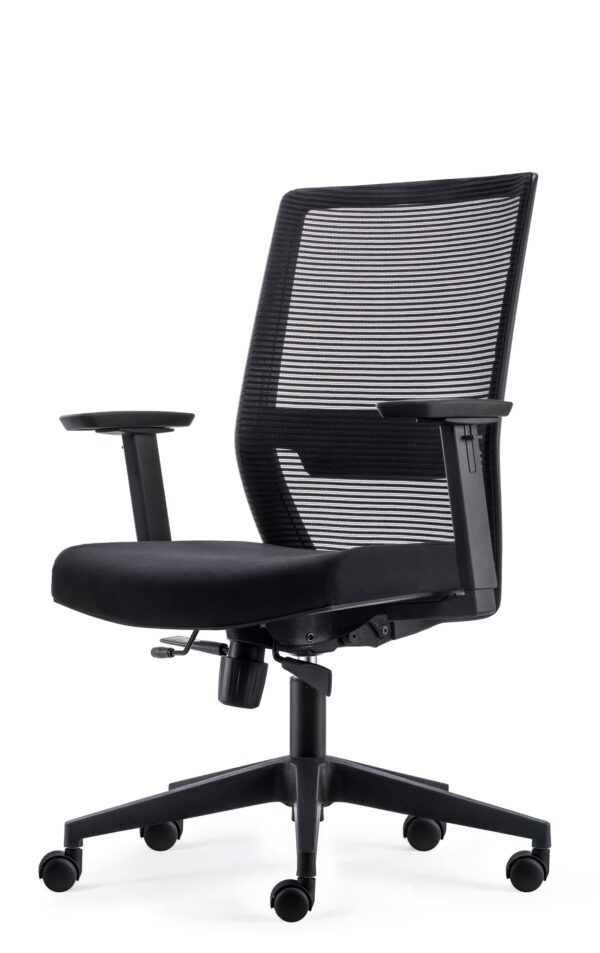 Atos M is part of Atos office chair collection with a medium backrest. An innovative and ergonomic swivel chair on a five spoke, black coloured plastic base with castors. It has a seat height adjustment and synchronised mechanism with seat depth adjustment. Height adjustable armrests with soft pads with forward and backward adjustment and height adjustable lumbar support element. Its seat is upholstered with fabric in black or grey colour. A polypropylene structured backrest with elastic mesh in black or grey colour. Adjustable headrest is an option too.
