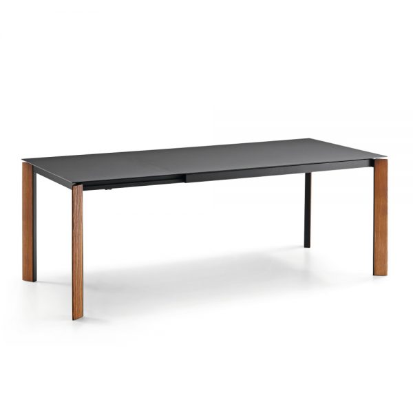 Blade is an extendable table with lacquered steel frame and wooden legs. There are plenty of options for top finishes such as melamine, lacquered wood, fenix, glass or crystal ceramic. Because of its different sizes and finishes, Blade can be used as a kitchen or dining table