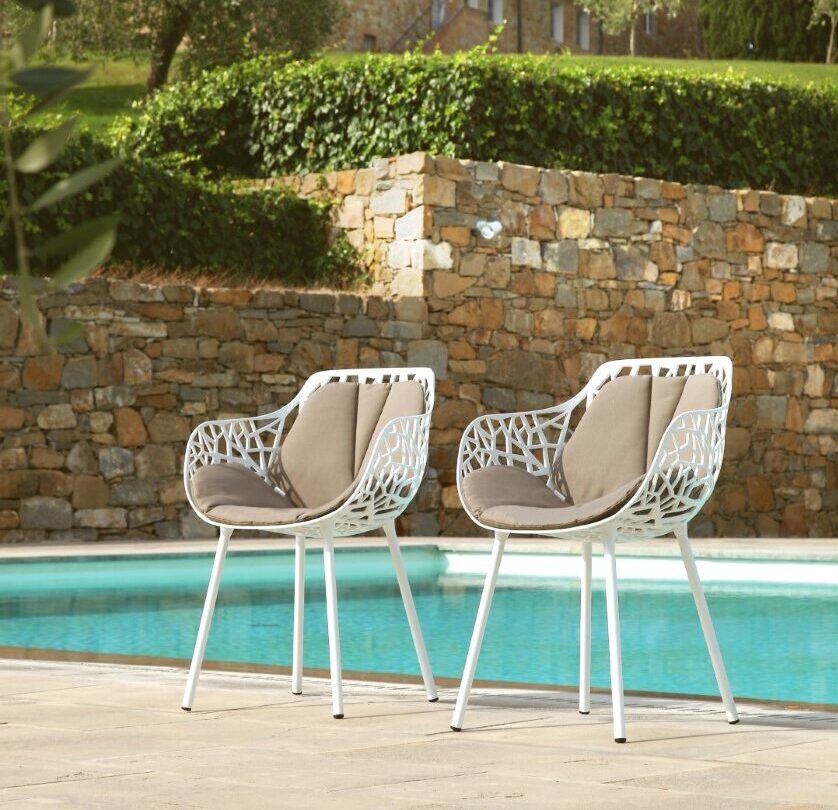 *SPECIAL OFFER -FROM €579, NOW €348 each Die-cast aluminium armchairs in white colour
