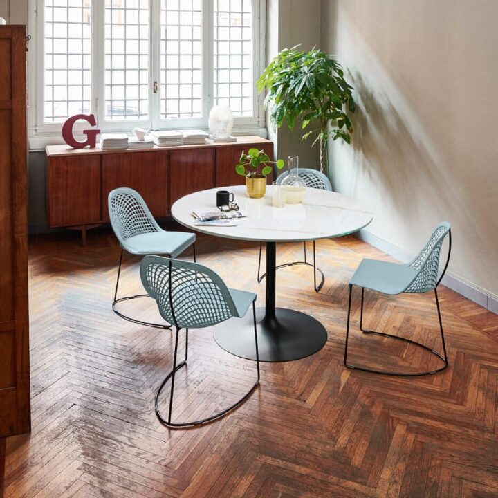 It can be said that describing the Guapa collection is like talking about a beautiful woman. It is a series of refined chairs due to their design and production methods, suitable for kitchen and dining rooms, decorating waiting rooms, restaurants, and relaxing areas in hotels and resorts that are particularly attentive to style and innovation. Leather, as a natural element, highlights comfort and strength, creating a play of light and shadows that enhances the beauty to the rest of its surrounding environment