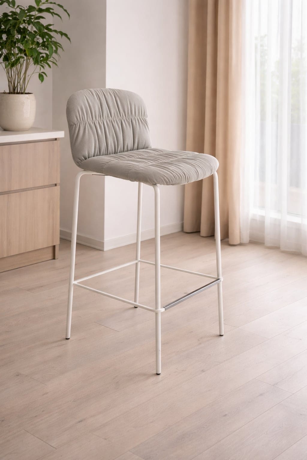 1 PIECE ONLY SPECIAL OFFER- FROM €345, NOW €165 Liu stool with white metal legs and light grey seat and backrest