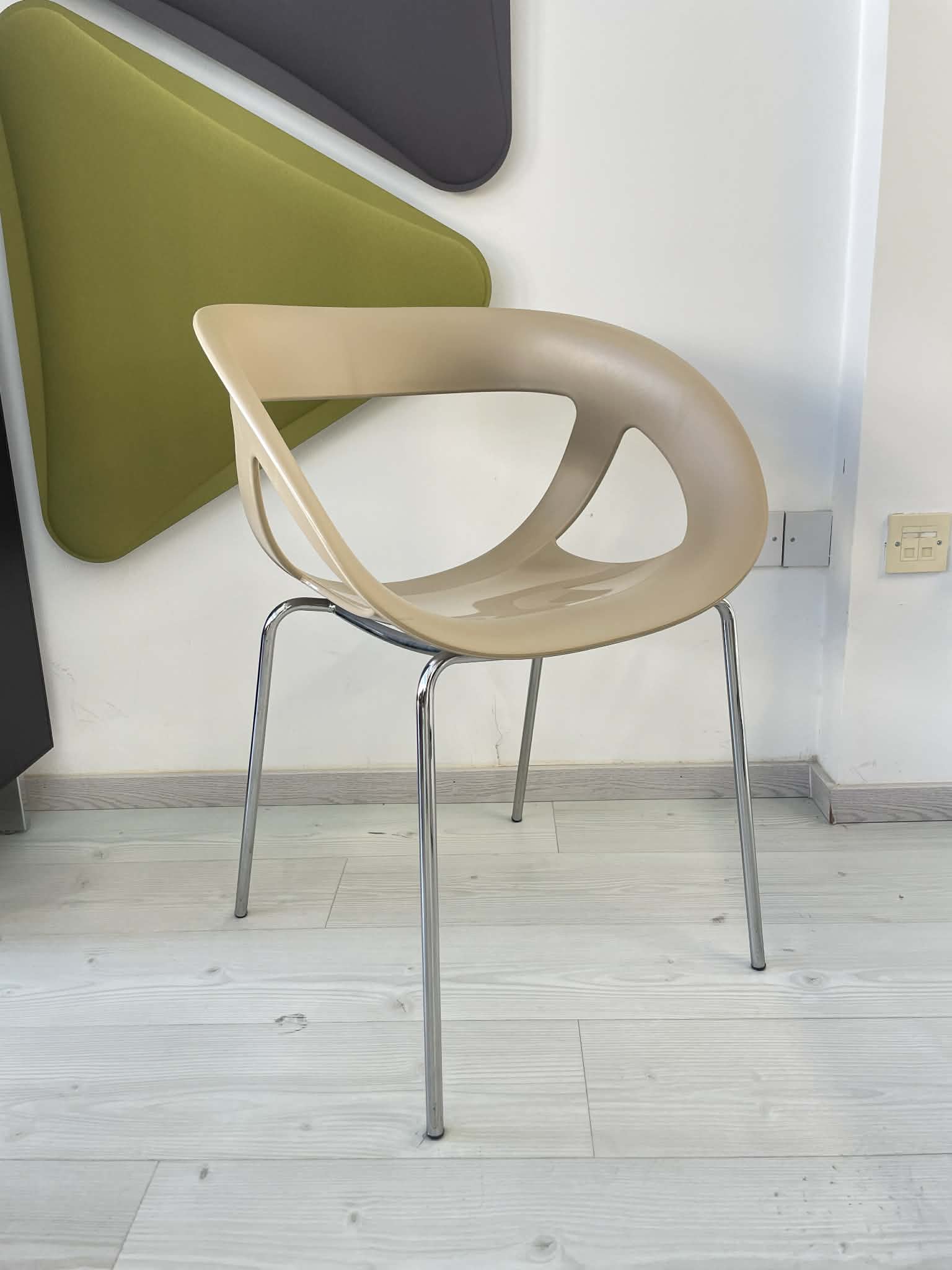 Moema chair in chrome frame and tortora seat