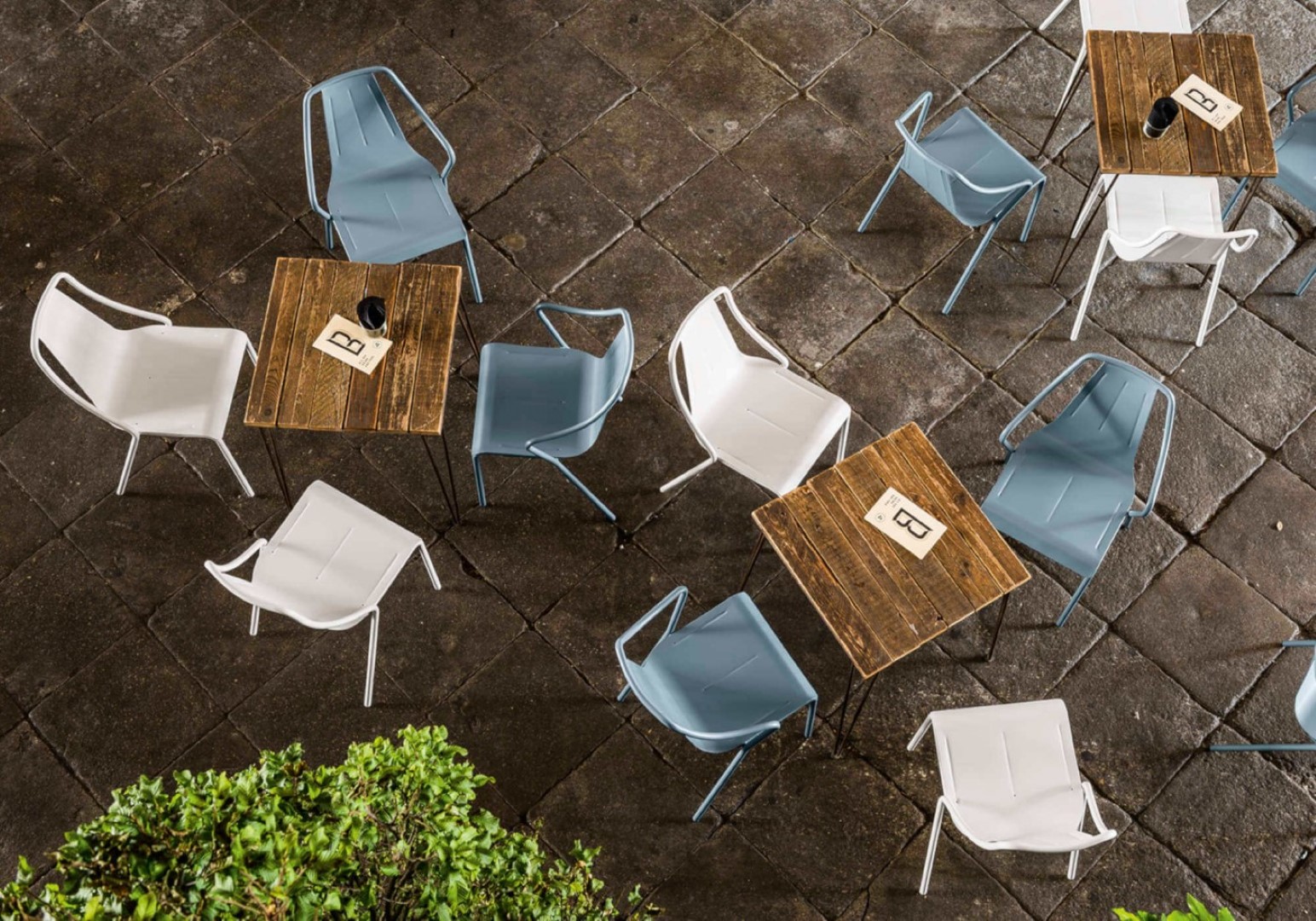 The principle of “less is more” inspires the Ola collection by eliminating any ‘extra’ elements to maintain a simplistic design. Ola presents two contrasting souls: one with a metal tube and the other with a body available either in wood, metal or padded. These two fundamental elements mold into soft waves characterised by countless shades: Nordic if interpreted with the warmth of wood, soft if upholstered with fabric or leather. The collection includes a chair, armchair, and stool, stackable and suitable for both indoor and outdoor use. Ola is extremely versatile: it can furnish living spaces as well as common areas that reflect the concept of friendliness in a lively space