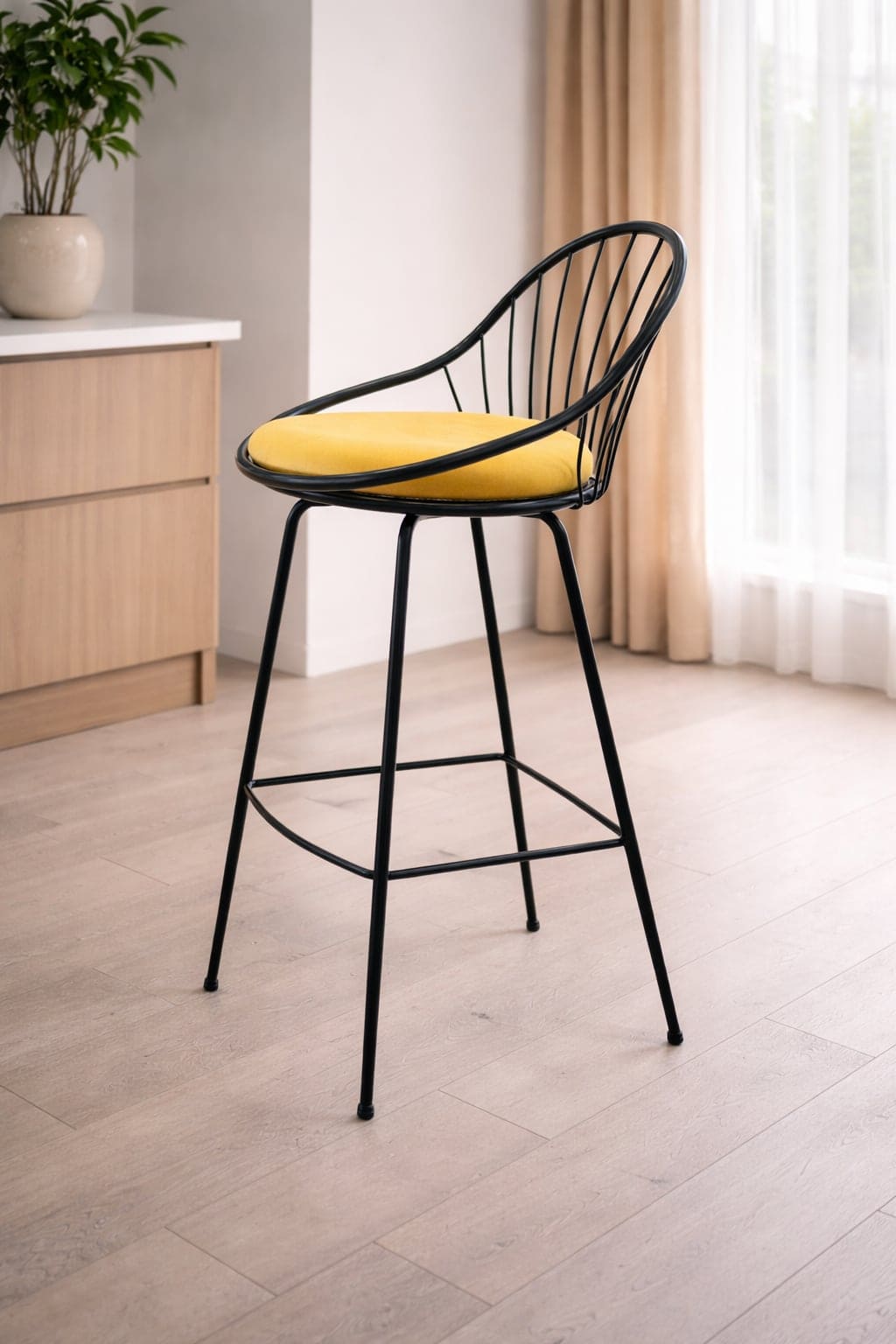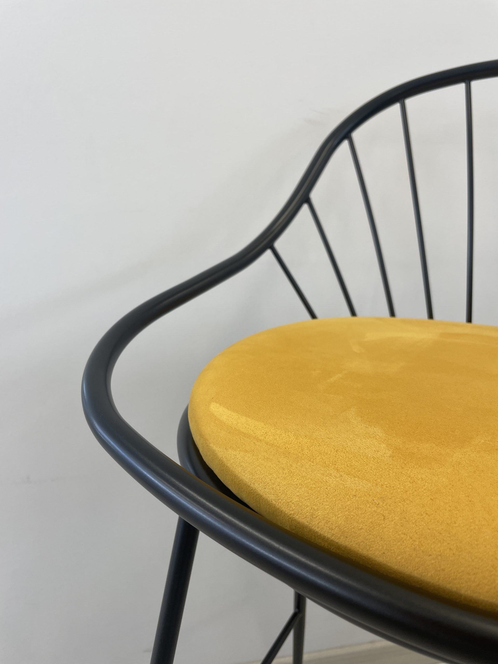 1 PIECE ONLY SPECIAL OFFER- FROM €344, NOW €135 Sun stool with black metal legs and backrest and yellow seat
