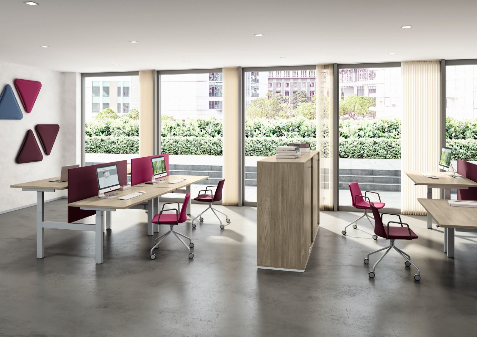 Up&Up collection is versatile because its desks and benches are adjustable in height, according to the user’s benefit. To the typical sedentary nature of the office environment, we oppose a product which encourages action and alternative options between the sitting and standing position